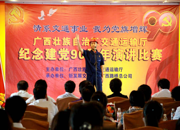 此次比賽作為廣西交通運輸廳慶祝建黨90周年重要活動之一,作為比賽的承辦單位,集團公司高度重視,精心策劃組織,并選派精干力量做好比賽各項會務工作。比賽過程中,現(xiàn)場良好的秩序以及周到的細節(jié)安排得到了現(xiàn)場嘉賓、評委及參賽選手的充分肯定。集團公司將以承辦此次演講比賽為契機,內(nèi)強素質(zhì),外塑形象,鞏固廣西新發(fā)展交通集團在全區(qū)交通運輸系統(tǒng)中的良好形象。