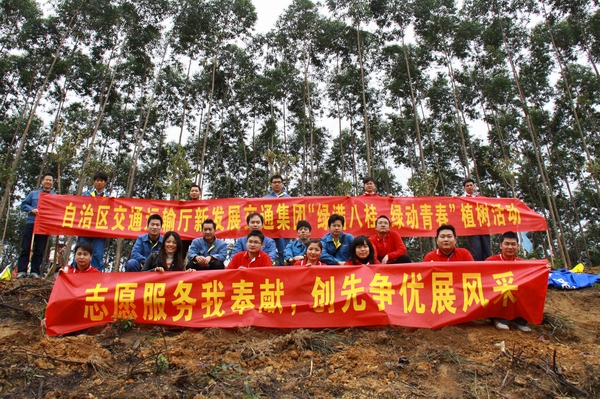 來自廣西交通科學(xué)研究院、廣西路橋建設(shè)有限公司等直屬單位的團(tuán)員青年及志愿者代表23人參加活動(dòng),參與植樹的團(tuán)員青年積極弘揚(yáng)青年志愿者精神,用實(shí)際行動(dòng),把創(chuàng)先爭優(yōu)活動(dòng)與“綠滿八桂,綠動(dòng)青春”活動(dòng)有機(jī)結(jié)合,激發(fā)了廣大青年員工奉獻(xiàn)愛心、勇當(dāng)先鋒的激情與熱情。在團(tuán)員青年們的共同努力下,集團(tuán)公司認(rèn)種的100余株樹苗挺拔地在林場(chǎng)“安了家”。
