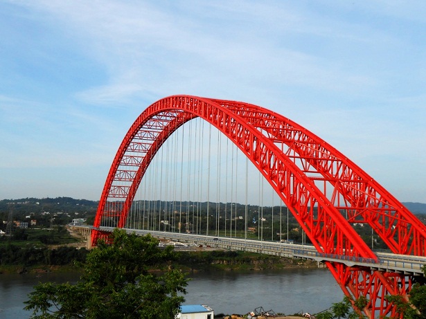 圖為運(yùn)用該技術(shù)成果建成的世界第一拱—合江長(zhǎng)江一橋(波司登大橋)
