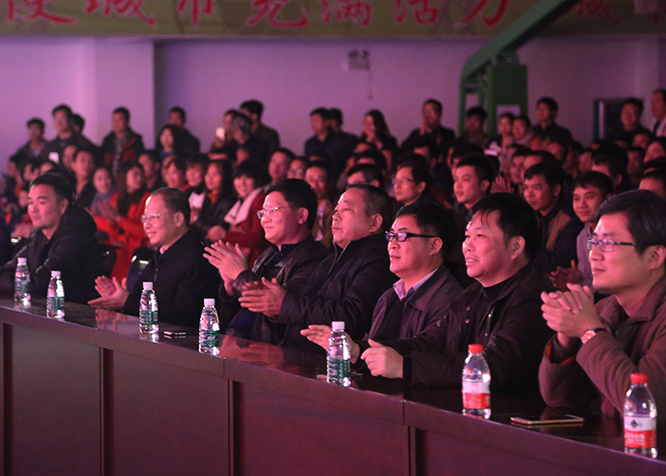 集團公司黨委副書記、紀委書記、工會主席張友坐(中)深入工程項目慰問并一同觀看了慰問演出。