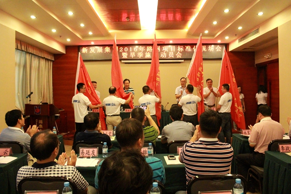 會上,集團領(lǐng)導(dǎo)還給“旱季施工青年突擊隊”授旗,各參建單位代表作了旱季施工表態(tài)發(fā)言。