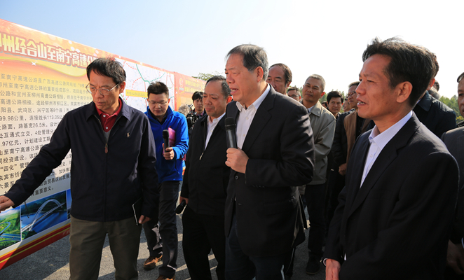 在柳州經(jīng)合山至南寧高速公路(簡(jiǎn)稱新柳南高速公路)開工現(xiàn)場(chǎng)會(huì)主會(huì)場(chǎng)上,集團(tuán)公司黨委書記、董事長(zhǎng)朱堅(jiān)和向自治區(qū)人民政府副主席陳剛、自治區(qū)交通運(yùn)輸廳副廳長(zhǎng)梁毅等與會(huì)領(lǐng)導(dǎo)介紹了新柳南高速公路項(xiàng)目情況,以及集團(tuán)公司目前承建的自治區(qū)重大建設(shè)項(xiàng)目鐘山至來賓、來賓至巴馬、融水至河池等3個(gè)縣縣通高速公路項(xiàng)目建設(shè)情況,朱堅(jiān)和表示,集團(tuán)公司致力于成為自治區(qū)黨委、政府最可信賴的交通基礎(chǔ)設(shè)施投資運(yùn)營(yíng)力量,全力以赴完成各重大項(xiàng)目建設(shè)任務(wù)。