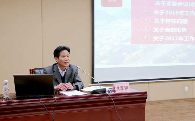 朱堅(jiān)和在講話指出,2017年乃至整個(gè)“十三五”時(shí)期,集團(tuán)公司正處于補(bǔ)齊短板、強(qiáng)基固本、結(jié)構(gòu)調(diào)整、提質(zhì)增效、深化改革、創(chuàng)新驅(qū)動(dòng)、轉(zhuǎn)型升級(jí)、二次創(chuàng)業(yè)的黃金時(shí)期。我們要堅(jiān)持穩(wěn)中求進(jìn)工作總基調(diào),堅(jiān)持牢固樹(shù)立新發(fā)展理念,堅(jiān)持以提高發(fā)展質(zhì)量和效益為中心,緊緊圍繞“再造一個(gè)新發(fā)展”宏偉目標(biāo),奮力擔(dān)當(dāng)“開(kāi)拓更大平臺(tái),發(fā)揮更大作用,承擔(dān)更大責(zé)任”新使命,堅(jiān)持“一二三四”新戰(zhàn)略,堅(jiān)持“一轉(zhuǎn)二提三攻堅(jiān)”新要求,繼續(xù)做好“三篇文章”,全面加強(qiáng)黨的建設(shè),全力推進(jìn)“轉(zhuǎn)型升級(jí)、二次創(chuàng)業(yè)”,努力成為自治區(qū)黨委政府最可信賴的依靠力量。