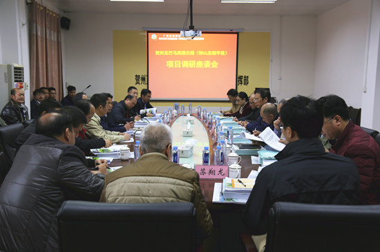 下午1時(shí),調(diào)研組在指揮部會議室與各參建單位代表進(jìn)行座談,觀看了賀州至巴馬高速公路項(xiàng)目建設(shè)情況等相關(guān)宣傳視頻,并聽取了項(xiàng)目建設(shè)情況的匯報(bào)。