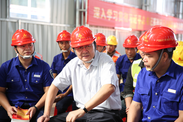 在作業(yè)一線,王躍飛主席結(jié)合企業(yè)實際情況,與現(xiàn)場員工及作業(yè)工人深入淺出的講解黨的十九大精神,讓黨的十九大精神在基層落地生根。王躍飛指出,黨的十九大對中華民族乃至每個老百姓的命運十分重要、關(guān)鍵,會議選舉出了以習近平總書記為核心的領(lǐng)導集體,確定了習近平新時代中國特色社會主義思想,確定了新的發(fā)展規(guī)劃。王躍飛表示,當前我國的奮斗目標是建設(shè)成為富強、民主、文明、和諧、美麗的社會主義現(xiàn)代化強國,我國的社會主要矛盾也已經(jīng)轉(zhuǎn)化為人民日益增長的美好生活需要和不平衡不充分的發(fā)展之間的矛盾,我們要對這些新論斷,新理念有清醒的認識。在宣講過程中,王躍飛用通俗易懂的語言對黨的十九大主要內(nèi)容進行了精彩的講解。