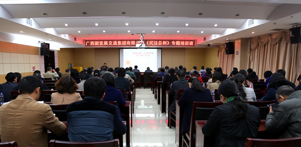 為準(zhǔn)確理解與適用《民法總則》,樹立干部職工依法治企、合規(guī)經(jīng)營的工作理念。12月22日上午,集團公司舉辦了《民法總則》專題培訓(xùn)。集團公司領(lǐng)導(dǎo)翁科、鄧遠志,總部各部門、直屬各企業(yè)分管法律事務(wù)和市場經(jīng)營的負責(zé)人以及法務(wù)管理、合同管理和市場經(jīng)營職能部門相關(guān)人員共160余人參加了此次培訓(xùn)。