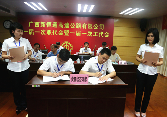 4月4日上午,新恒通公司一屆一次職代會暨一屆一次工代會勝利召開。會議全面貫徹落實黨的十九大及全國、全區(qū)交通工作會議和集團公司2018年工作會議精神,全面總結(jié)公司成立三年來的工作,明確和部署2018年各項重點工作,共謀公司發(fā)展大計,為奮力開創(chuàng)新時代“縣縣通”高速公路建設(shè)事業(yè)新局面而努力奮斗。集團公司領(lǐng)導(dǎo)出席會議并發(fā)表講話,集團公司派駐監(jiān)事會成員、41名正式代表、3名列席代表參加會議。公司黨委副書記、工會主席梁波主持會議。