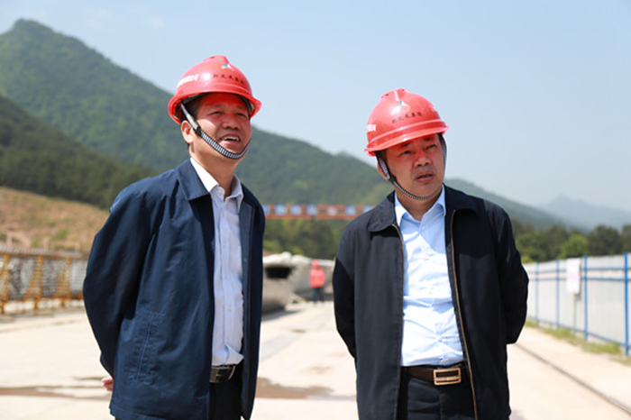 圖五:集團公司黨委書記、董事長朱堅和(左)與賀州市副市長陳翼明(右)在施工現(xiàn)場調(diào)研