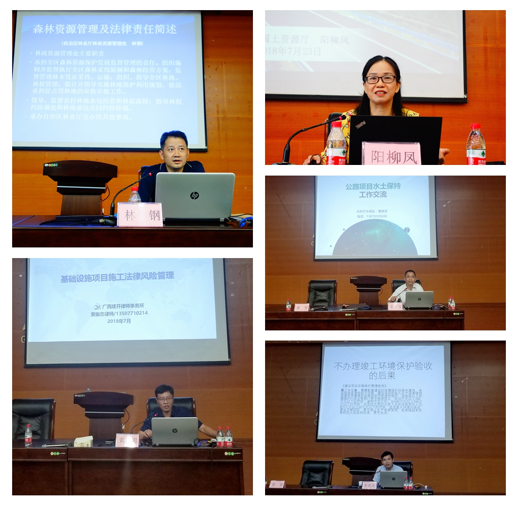 此次培訓(xùn)邀請(qǐng)了自治區(qū)國土資源廳規(guī)劃處副處長陽柳鳳、林業(yè)廳林政處副處長林鋼、環(huán)境保護(hù)廳環(huán)評(píng)處處長李亮光、水利廳水土保持處副處長黃家安以及廣西建開律師事務(wù)所主任黃振忠律師5位專家圍繞項(xiàng)目建設(shè)過程中的國土、林地、環(huán)境保護(hù)、水土保持以及項(xiàng)目經(jīng)營常見法律政策問題進(jìn)行專題授課。此次培訓(xùn)緊貼建設(shè)項(xiàng)目管理的實(shí)際需求,內(nèi)容豐富,針對(duì)性強(qiáng)。通過培訓(xùn),提高了廣大建設(shè)項(xiàng)目管理人員的法律政策水平,增強(qiáng)了處理具體法律問題的能力,對(duì)今后依法依規(guī)建設(shè)項(xiàng)目起到很好的促進(jìn)作用。