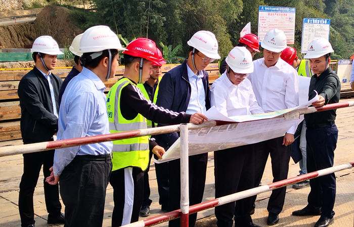 李定倫一行到紅水河特大橋一線施工現(xiàn)場(chǎng)與建設(shè)人員深入溝通交流,詳細(xì)了解項(xiàng)目進(jìn)展情況,聽(tīng)取當(dāng)前項(xiàng)目建設(shè)存在的重點(diǎn)難點(diǎn),對(duì)項(xiàng)目建設(shè)的總體規(guī)劃和方案提出意見(jiàn),并要求指揮部和各參建單位齊心協(xié)力、科學(xué)謀劃布局,認(rèn)真研究可行性方案,落實(shí)建設(shè)責(zé)任,嚴(yán)把質(zhì)量安全關(guān),確保紅水河特大橋項(xiàng)目建設(shè)高效、扎實(shí)、快速推進(jìn)。