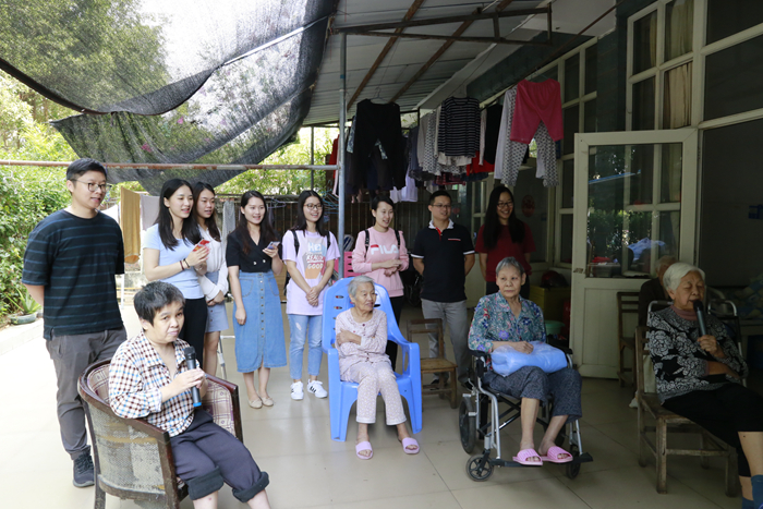 志愿者們圍坐在老人旁邊,詢問他們的生活情況、身體情況,叮囑他們注意保暖、保重身體,傾聽他們的人生故事和叮嚀告誡,并為給他們唱紅歌、讀故事、講新聞,豐富他們的精神生活。老人們對(duì)志愿者的到來感到十分高興,和志愿者一起合唱《團(tuán)結(jié)就是力量》、《歌唱祖國》、《沒有共產(chǎn)黨就沒有新中國》等歌曲。護(hù)老院處處洋溢著歡樂的氣氛,老人們的臉上洋溢著幸福。